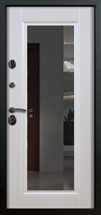 Металлическая входная дверь с зеркалом внутри №1 создана как универсальное решение для дома, квартиры или офиса, где важны и безопасность, и комфорт. Каркас выполнен из прочной профильной трубы с металлическим листом толщиной 2 мм и рёбрами жёсткости, что обеспечивает устойчивость к механическим воздействиям и долгий срок службы. Снаружи дверь покрыта порошковой окраской, стойкой к атмосферным влияниям и царапинам, а изнутри отделана МДФ с ПВХ-покрытием, которое сохраняет свежий вид даже при интенсивной эксплуатации. Встроенное зеркало превращает полотно в практичный элемент интерьера: оно визуально расширяет пространство прихожей и избавляет от лишних предметов мебели. Два контура уплотнителей защищают от пыли и сквозняков, а блокираторы усиливают общую надёжность конструкции. Модель не оснащена терморазрывом, зато отличается продуманным балансом практичности и доступной цены, оставаясь удобным вариантом для повседневного использования. Металлическая входная дверь с зеркалом внутри №1 от производителя: быстрое изготовление и монтаж в Лобне, индивидуальные размеры, широкий выбор материалов и фурнитуры, официальная гарантия до 10 лет.
