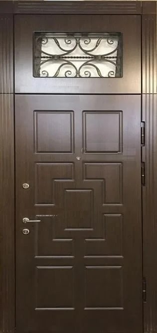 Эта входная дверь с решеткой и фрамугой №2 — практичный и надежный выбор для тех, кто ищет баланс между безопасностью и эстетикой. Ее конструкция выполнена из профильной трубы 50х25 мм и металла толщиной 2 мм, что гарантирует прочность и долговечность. Внешняя отделка из МДФ придает двери современный вид и защищает от внешних воздействий, таких как царапины и вмятины. Фрамуга добавляет свет в помещение, а решетка обеспечивает дополнительную безопасность. Резиновый уплотнитель с двумя контурами эффективно защищает от холода и пыли, а блокираторы обеспечивают надежную защиту от несанкционированного доступа. Эта модель может быть дополнена стеклопакетом, зеркалом или коваными элементами для улучшения внешнего вида, а также оборудована видеодомофоном для дополнительного удобства. Входная дверь с решеткой и фрамугой №2 от производителя: быстрое изготовление и монтаж в Лобне, индивидуальные размеры, широкий выбор материалов и фурнитуры, официальная гарантия до 10 лет.