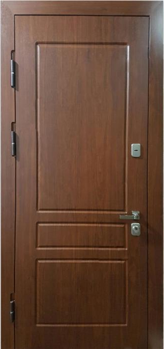 Дверь входная уличная с терморазрывом №41 – это надежная и стильная модель, идеально подходящая для частных домов и коттеджей. Конструкция двери с терморазрывом в коробке и полотне эффективно защищает от холодного воздуха и влаги, обеспечивая стабильный микроклимат внутри помещения. Внешняя и внутренняя отделка из панелей МДФ с ПВХ покрытием не только привлекает внимание своим современным дизайном, но и обеспечивает отличную стойкость к механическим повреждениям, а также долговечность. Металлическое полотно толщиной 1,5 мм с ребрами жесткости из профильных труб гарантирует высокую прочность, а также надежную защиту от взлома. Шумо- и теплоизоляция из пенопласта повышенной плотности создают дополнительный комфорт. Дверь оснащена высококачественными замками Kale Kilit с тремя ригелями, что обеспечивает высокий уровень безопасности. Дверь входная уличная с терморазрывом №41 от производителя: быстрое изготовление и монтаж в Лобне, индивидуальные размеры, широкий выбор материалов и фурнитуры, официальная гарантия до 10 лет.