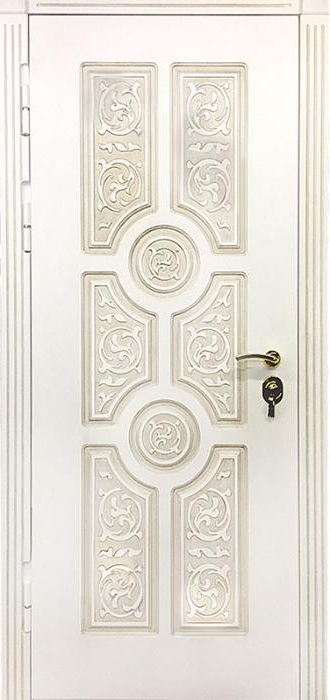 Дверь уличная с терморазрывом №49 — это надежное решение для частных домов и коттеджей, которое обеспечит комфорт и защиту от внешних факторов. С терморазрывом в коробке и полотне, эта дверь исключает проникновение холода, сохраняя тепло в доме и предотвращая появление конденсата. Внешняя и внутренняя отделка выполнена с использованием накладки МДФ, что придает двери привлекательный вид и долговечность, стойкость к механическим повреждениям и атмосферным воздействиям. Ковка, как элемент декора, добавляет изысканности и подчеркивает индивидуальность. Металлическая конструкция с толщиной полотна 1,5 мм и каркасом из профильных труб гарантирует прочность и устойчивость. Уплотнение с тремя контурами магнитного герметика и высокая шумо- и теплоизоляция на основе пенопласта делают дверь идеальной для использования в уличных условиях. Возможность замены замков и добавления стеклопакетов или кованых элементов позволяет индивидуализировать дверное решение под любые потребности. Дверь уличная с терморазрывом №49 от производителя: быстрое изготовление и монтаж в Лобне, индивидуальные размеры, широкий выбор материалов и фурнитуры, официальная гарантия до 10 лет.