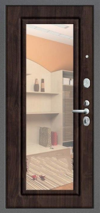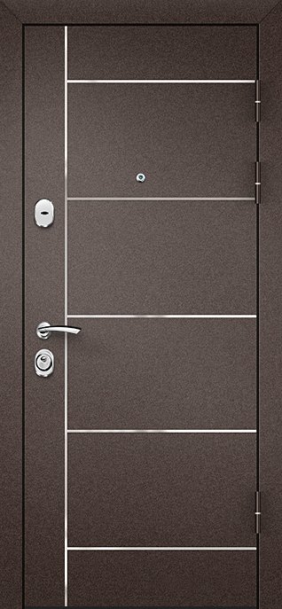 Каркас из профильной трубы и стальной лист толщиной 2 мм обеспечивают прочность конструкции и устойчивость к взлому, а два контура уплотнителей защищают помещение от сквозняков и уличного шума. Входная дверь в квартиру с зеркалом №10 выделяется сочетанием практичного молоткового напыления снаружи и аккуратной плиты МДФ внутри. Такое покрытие не боится механических повреждений и перепадов температуры, долго сохраняя первоначальный вид. Зеркало на внутренней стороне делает прихожую светлее и визуально просторнее, заменяя полноценное настенное. Дополнительные блокираторы и система ребер жёсткости усиливают надежность. Возможность изготовления в любых размерах позволяет адаптировать модель под особенности квартиры, офиса или частного дома, сохранив баланс между эстетикой и безопасностью. Входная дверь в квартиру с зеркалом №10 от производителя: быстрое изготовление и монтаж в Лобне, индивидуальные размеры, широкий выбор материалов и фурнитуры, официальная гарантия до 10 лет.