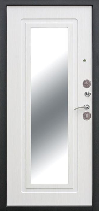 Железная дверь входная в квартиру с зеркалом №68 сочетает в себе надежность металла и практичность продуманного дизайна. Снаружи она покрыта молотковым напылением, известным своей устойчивостью к сколам и царапинам, а также способностью долго сохранять аккуратный внешний вид даже при активной эксплуатации. Внутренняя сторона оформлена накладкой из МДФ, что делает её гармоничным элементом интерьера и добавляет уюта. Встроенное зеркало не только удобно в повседневной жизни, но и визуально расширяет пространство прихожей. Основа конструкции выполнена из профильных труб с листом стали толщиной 2 мм, что гарантирует прочность и долговечность. Два контура уплотнения защищают от сквозняков и уличного шума, а наличие терморазрыва в коробке и полотне препятствует промерзанию в холодное время года. Такая дверь станет надежным и функциональным решением для квартиры, офиса или загородного дома. Железная дверь входная в квартиру с зеркалом №68 от производителя: быстрое изготовление и монтаж в Лобне, индивидуальные размеры, широкий выбор материалов и фурнитуры, официальная гарантия до 10 лет.