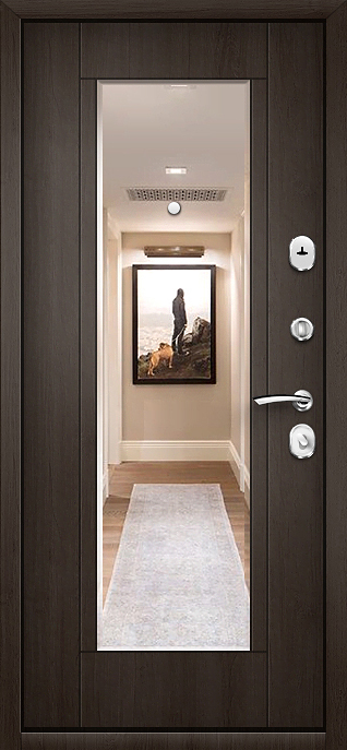 Входная дверь с зеркалом внутри №71 удачно сочетает практичность и надежность, оставаясь при этом стильным элементом интерьера. Она подходит для квартиры, офиса или частного дома, создавая удобство в быту и подчеркивая статус владельца. Внешняя сторона покрыта порошковой окраской, устойчивой к царапинам и перепадам температуры, что гарантирует долговечность и сохранение привлекательного вида. Внутри установлена накладка из МДФ, которая придает поверхности уют и делает её гармоничной частью интерьера. Зеркало на внутренней стороне экономит пространство прихожей и добавляет ей визуальной глубины. Каркас из профильной трубы с листом стали толщиной 2 мм и ребрами жесткости обеспечивает прочность и устойчивость ко взлому. Два контура уплотнителей создают дополнительную защиту от сквозняков и пыли, а терморазрыв в коробке и полотне предотвращает промерзание зимой. Для безопасности предусмотрены два замка российского производства с ригельными системами, при желании возможна замена на замки премиальных марок или установка умных электронных решений. Дверь входная с зеркалом внутри №71 от производителя: быстрое изготовление и монтаж в Лобне, индивидуальные размеры, широкий выбор материалов и фурнитуры, официальная гарантия до 10 лет.