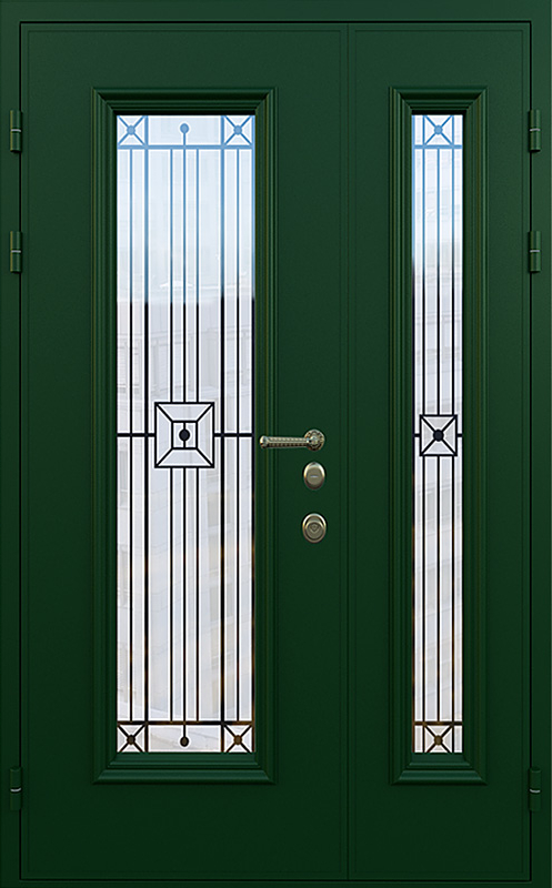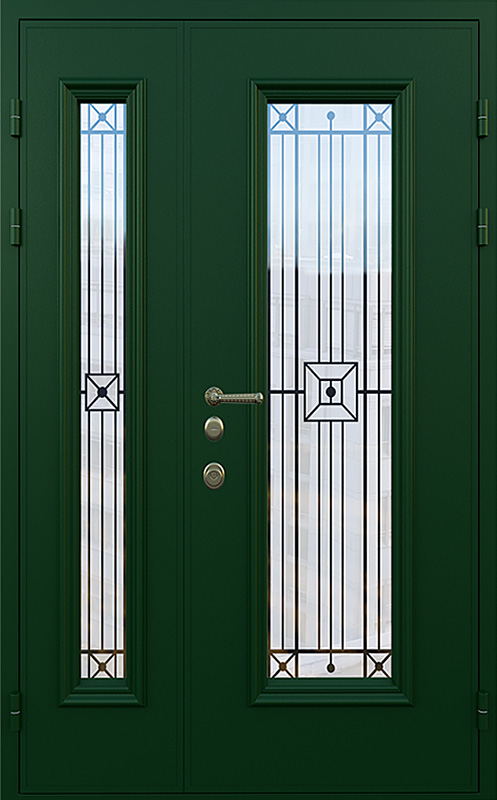 Зеленая полуторная дверь со стеклопакетом для частного дома №18 — это идеальный выбор для тех, кто хочет добавить в свой дом надежность и стиль. Элементы декора, такие как багет и ковка, придают двери элегантный вид, который идеально гармонирует с фасадом загородного дома. Панели МДФ с ПВХ-покрытием, использованные для внешней и внутренней отделки, обеспечивают высокую стойкость к механическим повреждениям и внешним воздействиям, сохраняя прекрасный внешний вид на долгое время. Зеленая полуторная дверь со стеклопакетом для частного дома №18 от производителя: быстрое изготовление и монтаж в Лобне, индивидуальные размеры, широкий выбор материалов и фурнитуры, официальная гарантия до 10 лет.