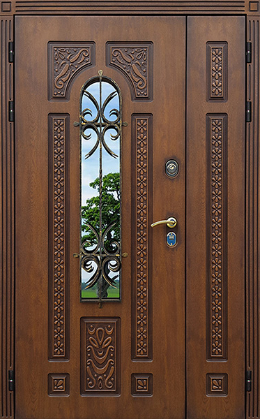 Двойная входная дверь с большим стеклом и ковкой для дома №25 сочетает в себе стиль и надежность, предлагая великолепное решение для вашего дома. Внешняя и внутренняя отделка выполнены из панелей МДФ с ПВХ, что придает двери долговечность и устойчивость к механическим повреждениям, а также способствует легкости ухода. Стеклопакет в комбинации с изысканным кованым узором создаёт не только эстетическое наслаждение, но и позволяет улучшить светопроникновение в помещении. Двойная входная дверь с большим стеклом и ковкой для дома №25 от производителя: быстрое изготовление и монтаж в Лобне, индивидуальные размеры, широкий выбор материалов и фурнитуры, официальная гарантия до 10 лет.