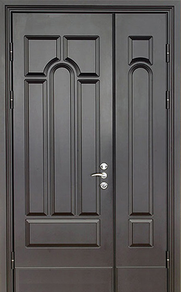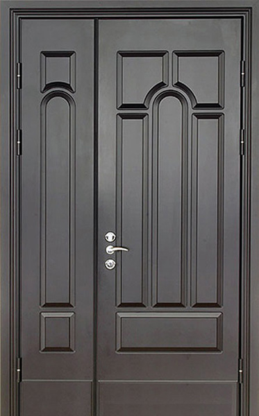 Металлическая двухстворчатая дверь для дома цвета графит №27 – это стильное и надежное решение для вашего жилья. Внешняя и внутренняя отделка выполнены из МДФ, что придает двери изысканный вид и увеличивает её стойкость к механическим повреждениям. Цвет графит придаёт двери современный и элегантный оттенок, который легко впишется в интерьер как частных домов, так и современных офисов. Металлическая двухстворчатая дверь для дома цвета графит №27 от производителя: быстрое изготовление и монтаж в Лобне, индивидуальные размеры, широкий выбор материалов и фурнитуры, официальная гарантия до 10 лет.