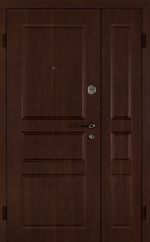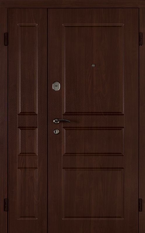 Коричневая входная полуторная дверь с филенчатой створкой №4 – это надежное и стильное решение для вашего дома или офиса. Внешняя и внутренняя отделка из МДФ с ПВХ обеспечивает долговечность и устойчивость к повреждениям, сохраняя при этом элегантный внешний вид. Прочные материалы конструкции, такие как профильная труба 50х25 мм и лист металла толщиной 2 мм, гарантируют стабильность и безопасность. Ребра жесткости из профильных труб 40х25 мм усиливают дверное полотно, а уплотнение с двумя контурами надежно защищает от внешних факторов. Несмотря на отсутствие терморазрыва, в двери реализованы терморазрывы в коробке и полотне, что помогает улучшить теплоизоляцию. Возможность выбора дополнительных опций, таких как шумоизоляция, делает эту дверь универсальной для различных условий эксплуатации. Коричневая входная полуторная дверь с филенчатой створкой №4 от производителя: быстрое изготовление и монтаж в Лобне, индивидуальные размеры, широкий выбор материалов и фурнитуры, официальная гарантия до 10 лет.