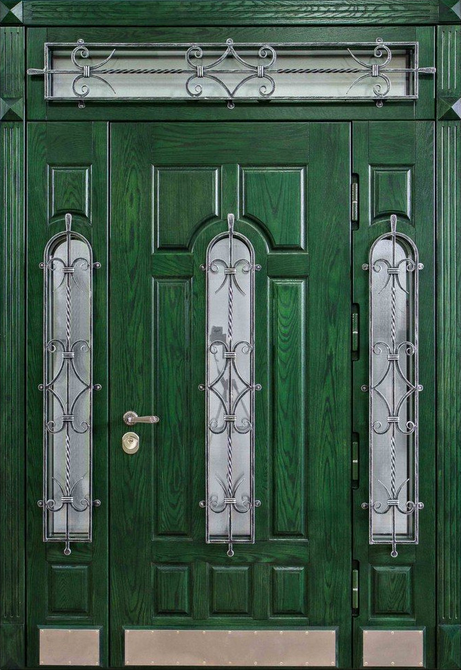 Красивая шпонированная дверь с надежной фурнитурой и ковкой "лоза" №33