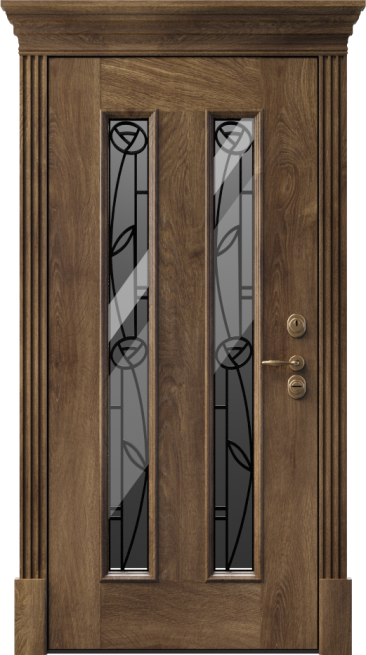 Надежность и эстетика в одной конструкции — именно так можно описать входную дверь с ковкой и стеклом №12. Она рассчитана на установку в частных домах и коттеджах, где важно подчеркнуть не только защиту, но и выразительный облик фасада. Основа выполнена из стали толщиной 2 мм с усилением профильными трубами и ребрами жесткости, что гарантирует прочность и долговечность. Два контура уплотнителя создают плотное прилегание, снижая уровень уличного шума и препятствуя проникновению влаги. Наружная и внутренняя отделка выполнена плитами МДФ, материал устойчив к царапинам и перепадам температуры, сохраняя аккуратный вид долгие годы. Особую роль играют стеклянные вставки и изящные кованые элементы, превращающие дверь в декоративный акцент парадного входа. За безопасность отвечают замки Kale Kilit с разными системами запирания, которые при желании можно заменить на другие модели, включая современные электронные варианты. Входная дверь с ковкой и стеклом №12 от производителя: быстрое изготовление и монтаж в Лобне, индивидуальные размеры, широкий выбор материалов и фурнитуры, официальная гарантия до 10 лет.