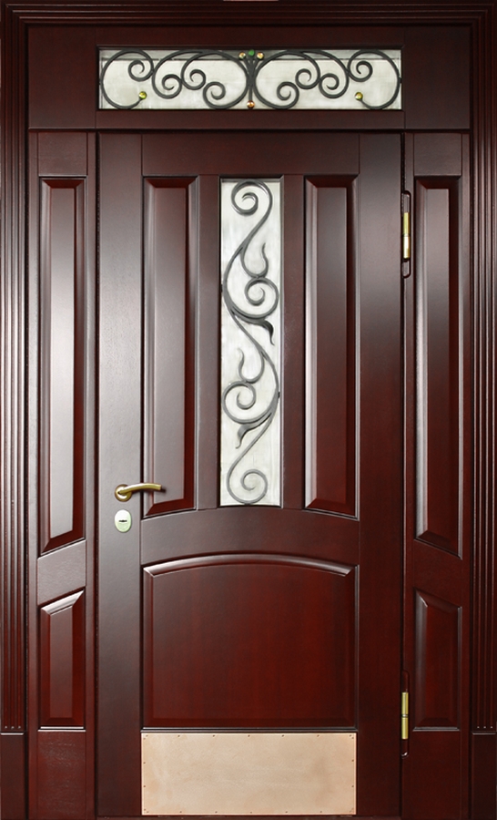 Красивая шпонированная дверь с надежной фурнитурой и ковкой "лоза" №33 идеально дополнит интерьер вашего частного дома или коттеджа. Внешняя и внутренняя отделка выполнены из натурального дерева, что придает двери элегантность и стиль. Профильная труба 50х25 мм используется для каркаса и полотна, а лист металла толщиной 2 мм и ребра жесткости из профильных труб 40х25 мм обеспечивают прочность и долговечность. Несмотря на отсутствие терморазрыва, дверь гарантирует надежную защиту и теплоизоляцию благодаря двум контурам уплотнения. Элементы ковки "лоза" придают двери особое очарование, сочетая практичность с эстетикой. Эта дверь — идеальный выбор для тех, кто ценит стиль, качество и безопасность. Красивая шпонированная дверь с надежной фурнитурой и ковкой "лоза" №33 от производителя: быстрое изготовление и монтаж в Лобне, индивидуальные размеры, широкий выбор материалов и фурнитуры, официальная гарантия до 10 лет.